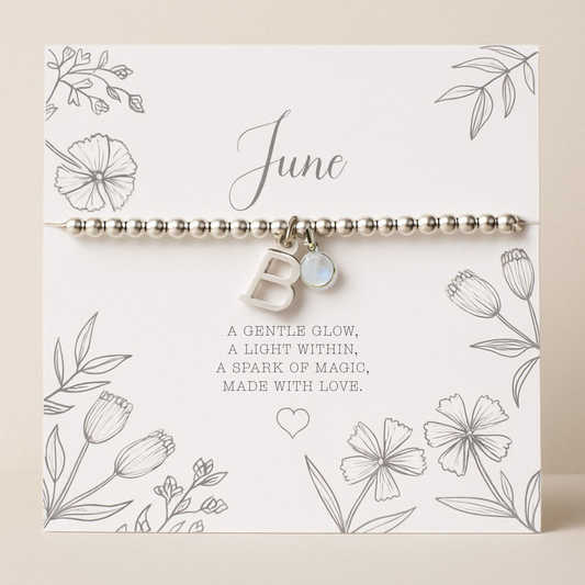 Personalised June Birthstone, Initial Letter & Moonstone Charm Bracelet