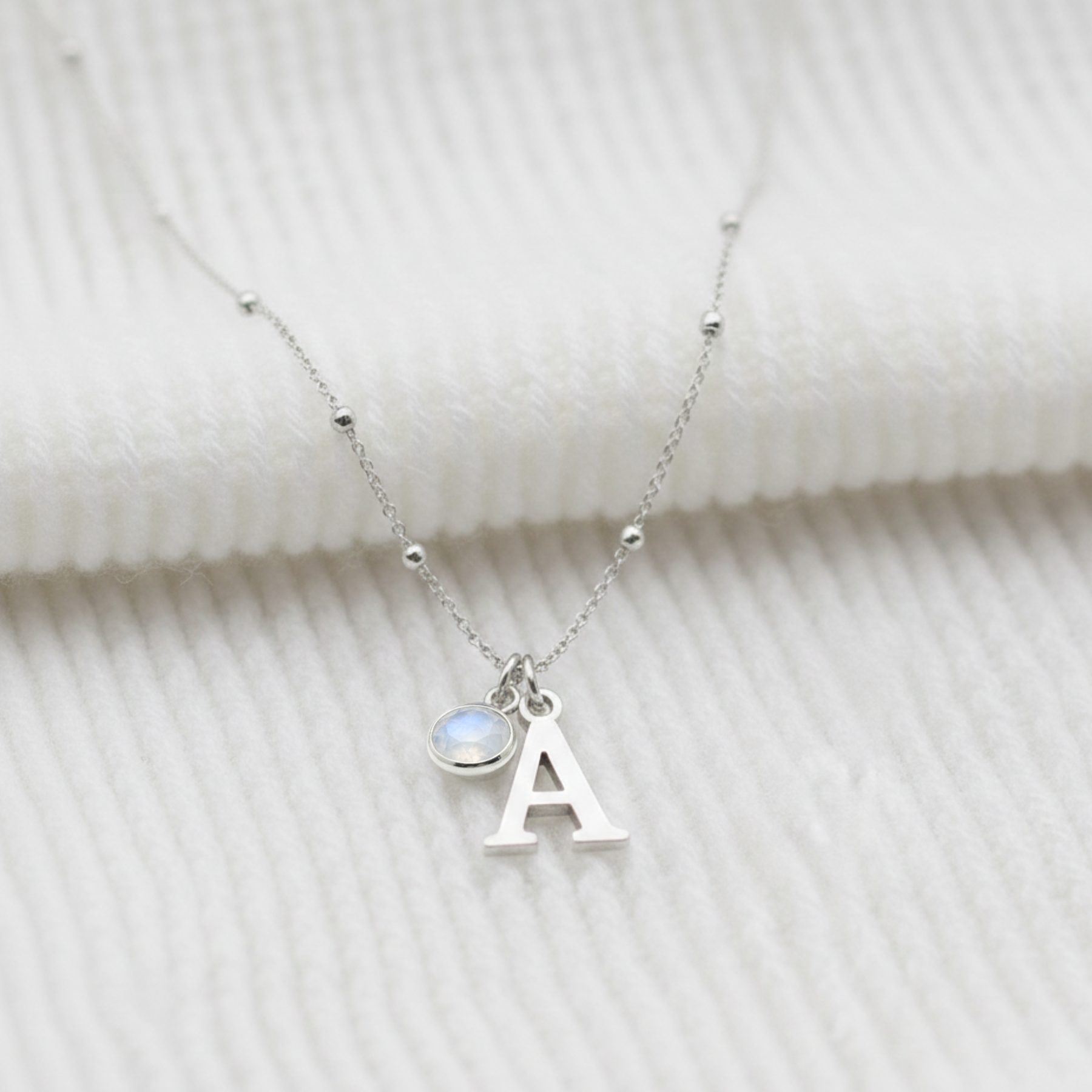 - Featuring your chosen birthstone charm and initial letter charm.