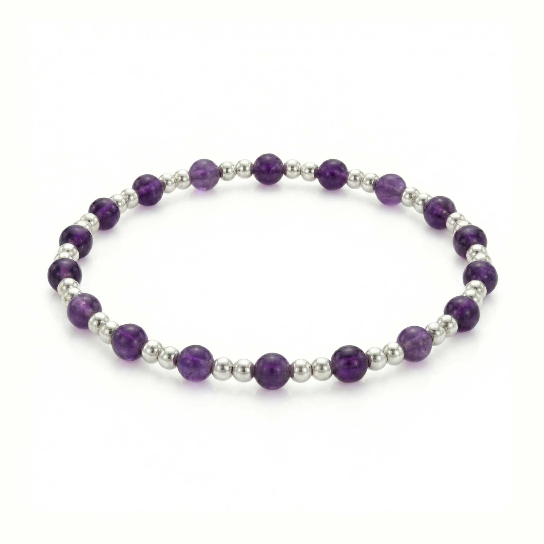 Handcrafted with 925 Sterling Silver 3mm or gold filled Beads, and finished with semi-precious amethyst gemstones.