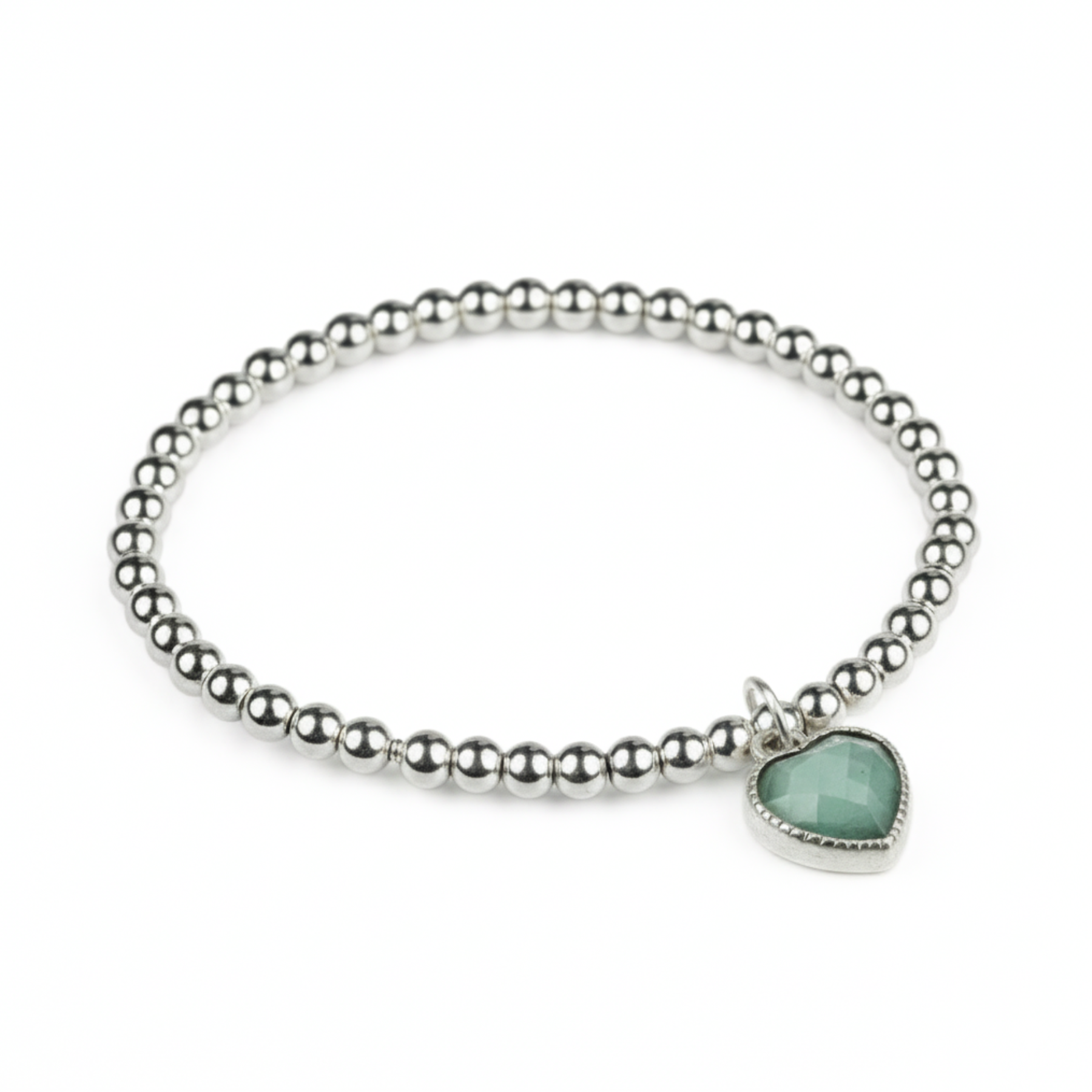 Our Beautiful Heart Charm Bracelet is handcrafted using sterling silver beads, finished with an Amazonite Heart Charm.
