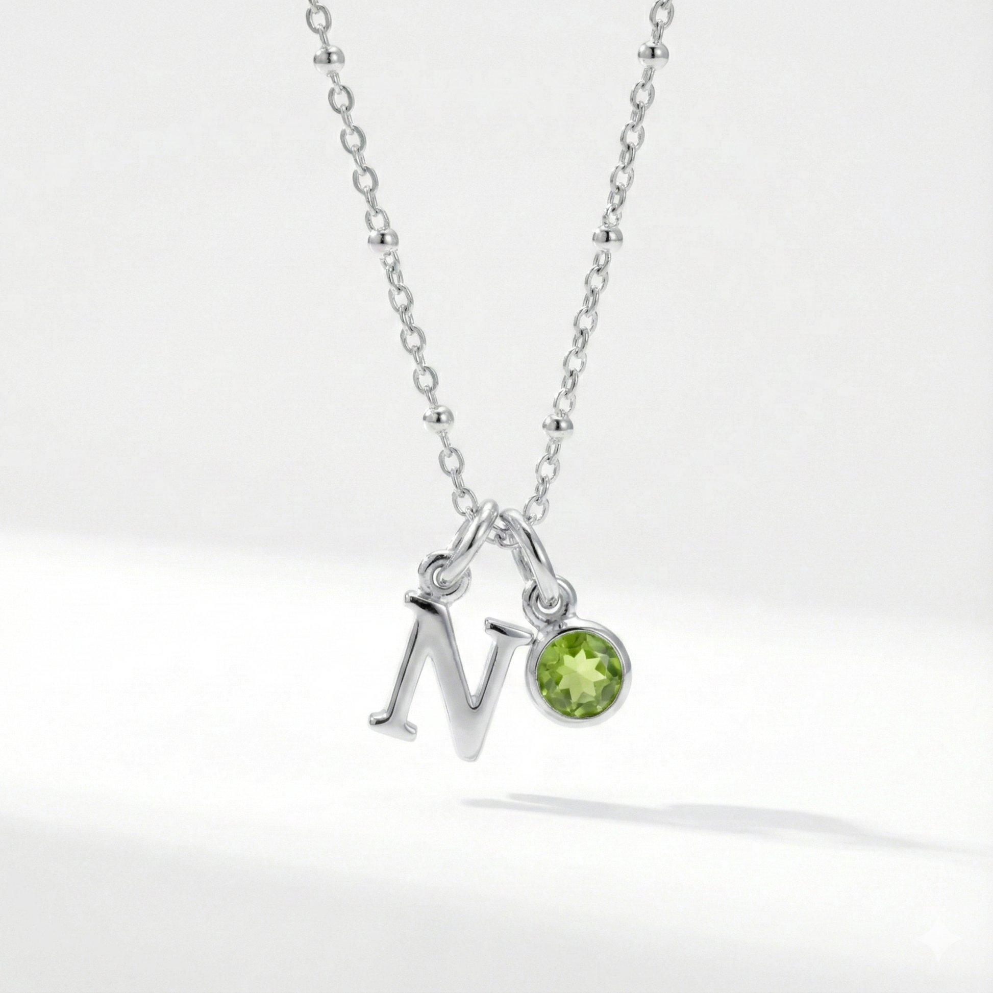 Initial & August Birthstone Necklace | Personalised Peridot Gift
