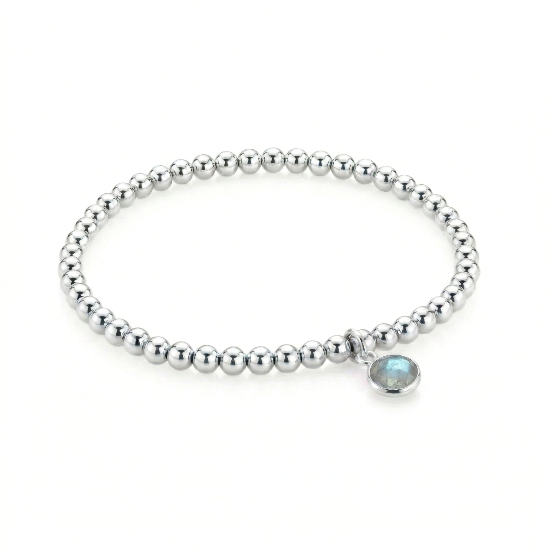 Handcrafted with 925 Sterling SILver 4mm Beads, finished with a Labradorite March Birthstone Charm.