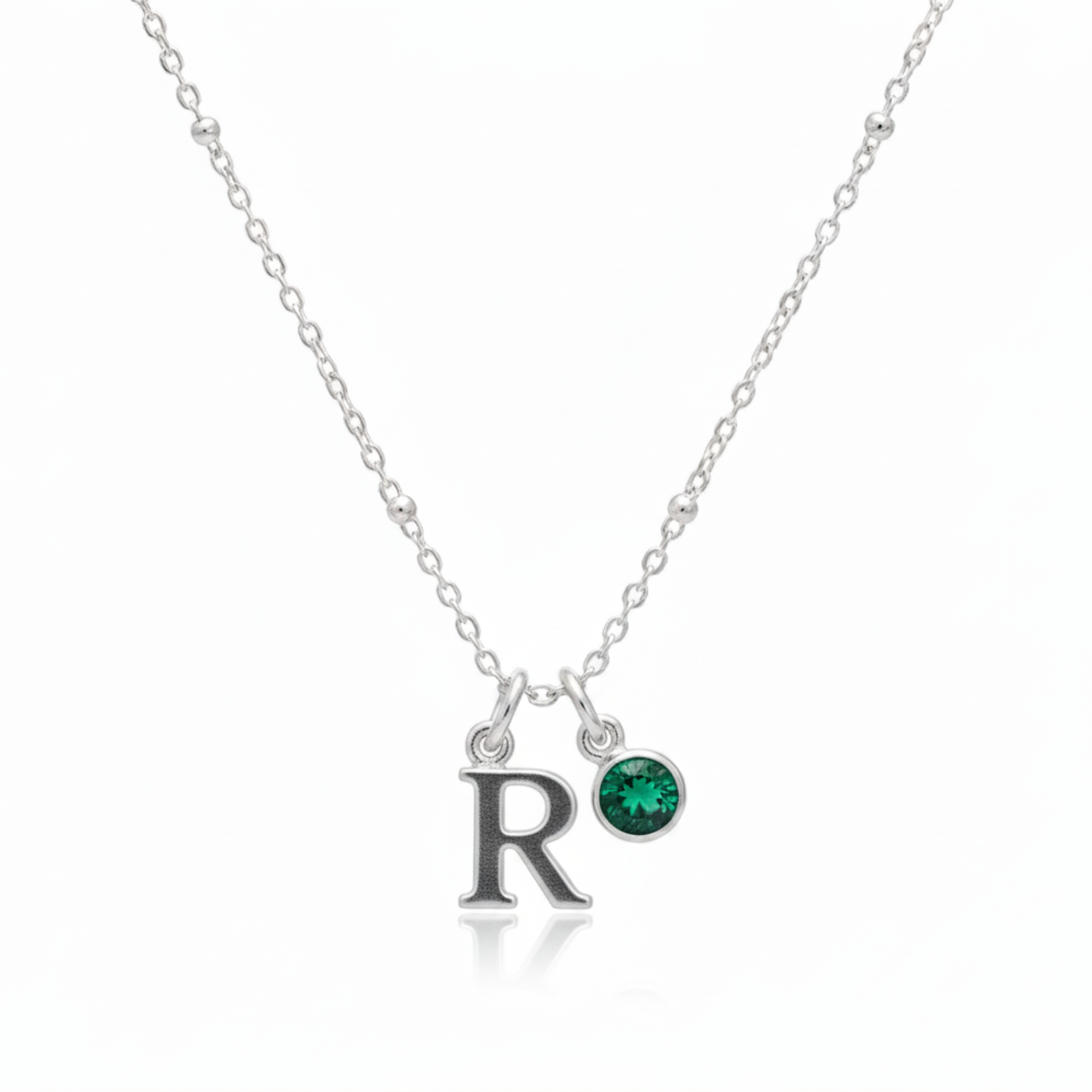 A heartfelt token of love, the Initial Letter & May Birthstone Charm Necklace is a beautiful way to carry meaning close to your heart. Handcrafted with a dainty 925 sterling silver chain, this personalised necklace features your chosen initial and a vivid emerald green charm, symbolising clarity, strength, and inner balance.