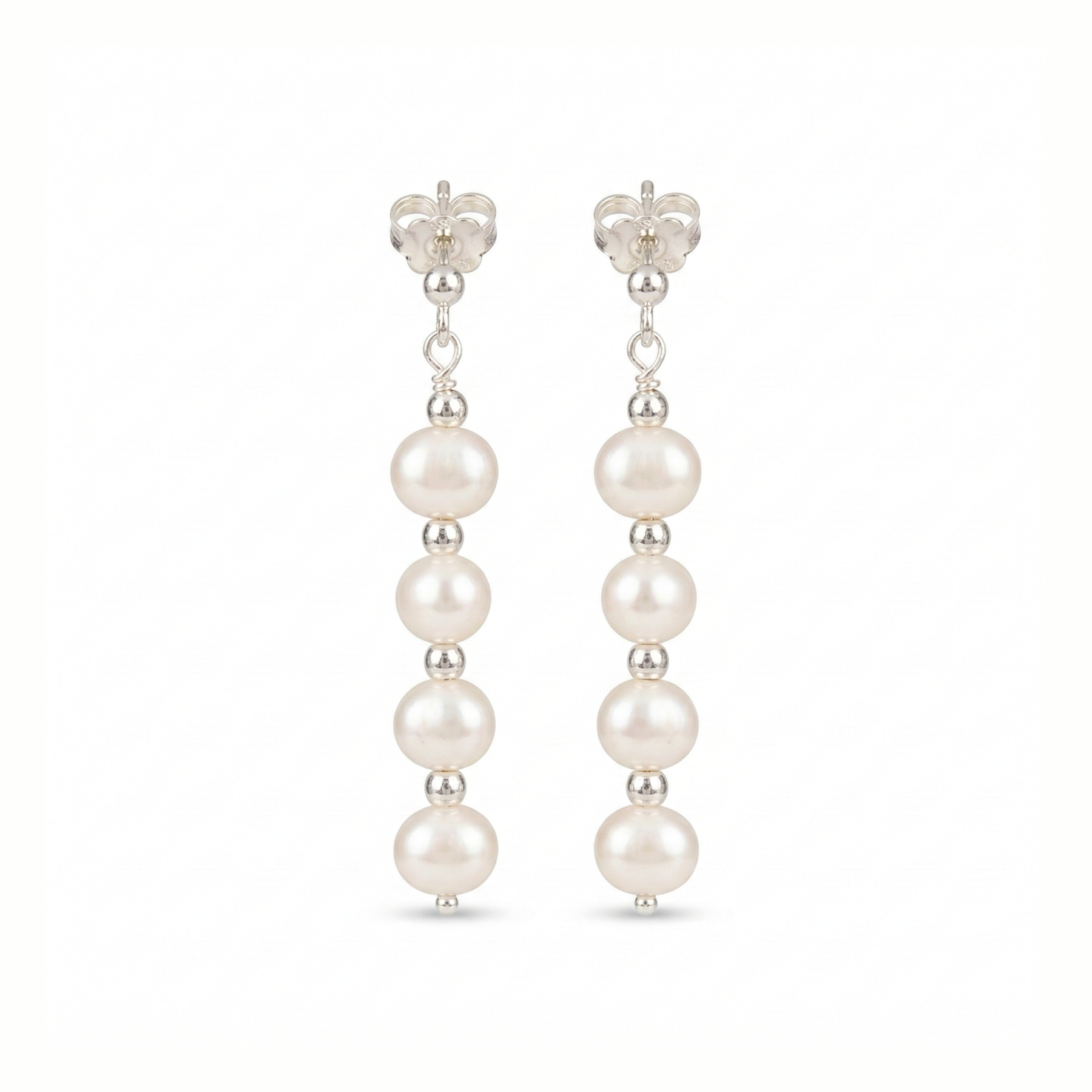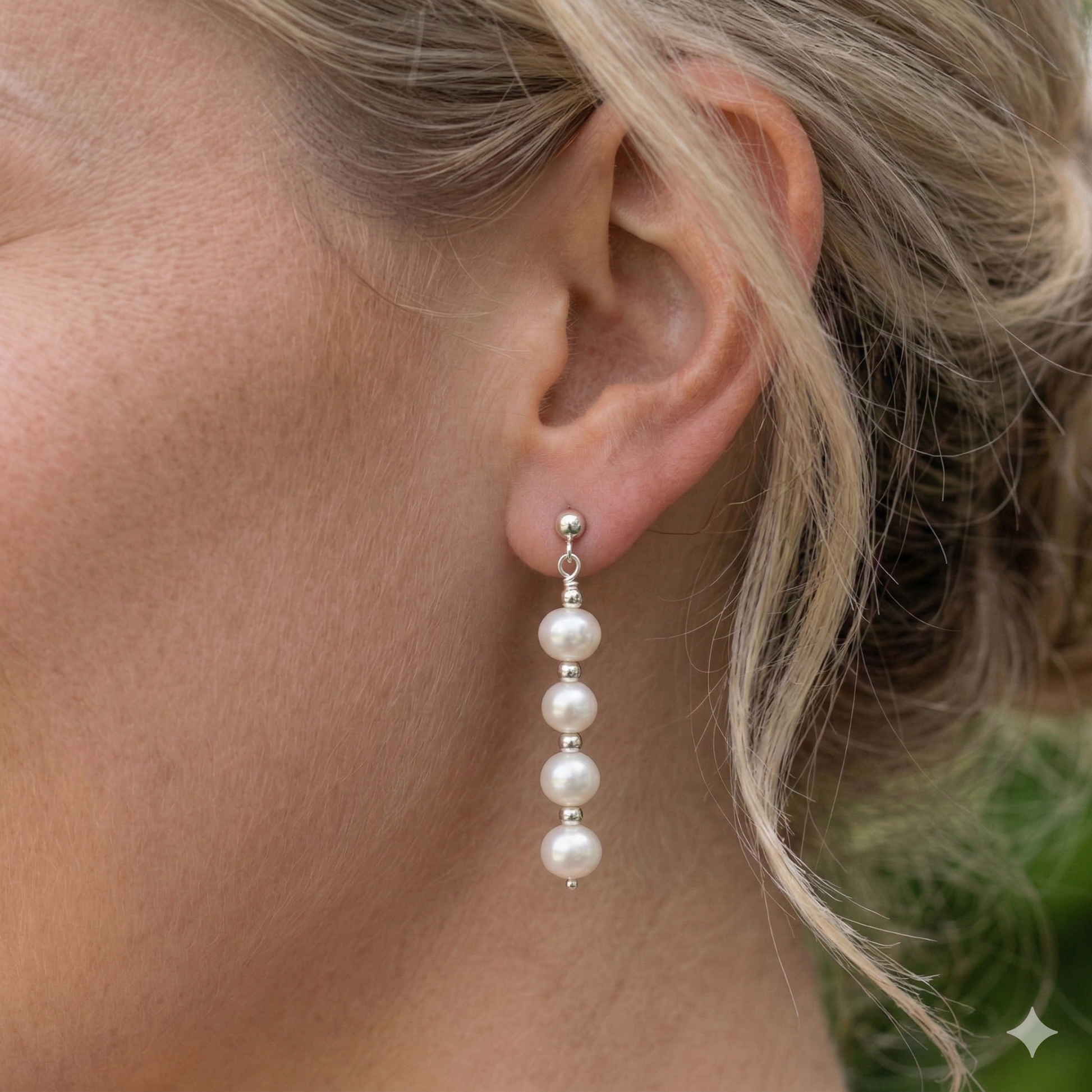 Our Beautiful Pearl Drop Earrings are handcrafted using either sterling silver beads, or gold-filled beads, and finished with genuine Freshwater Pearls.